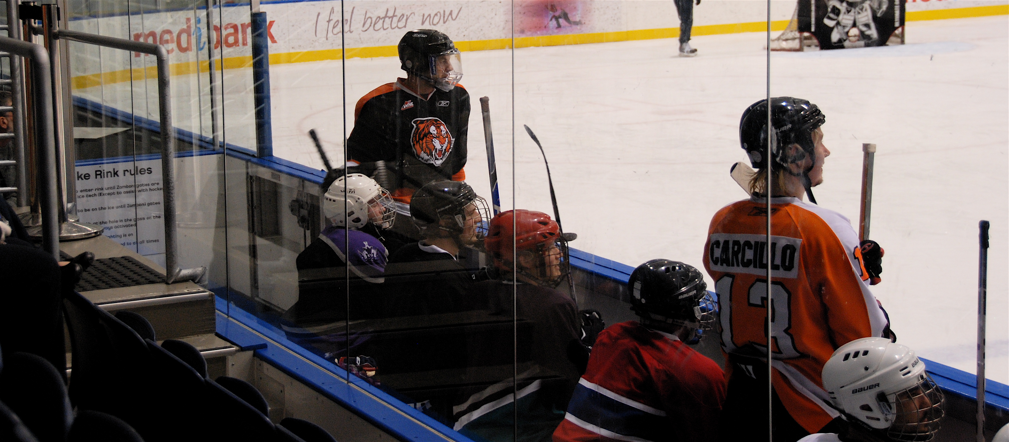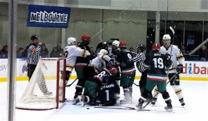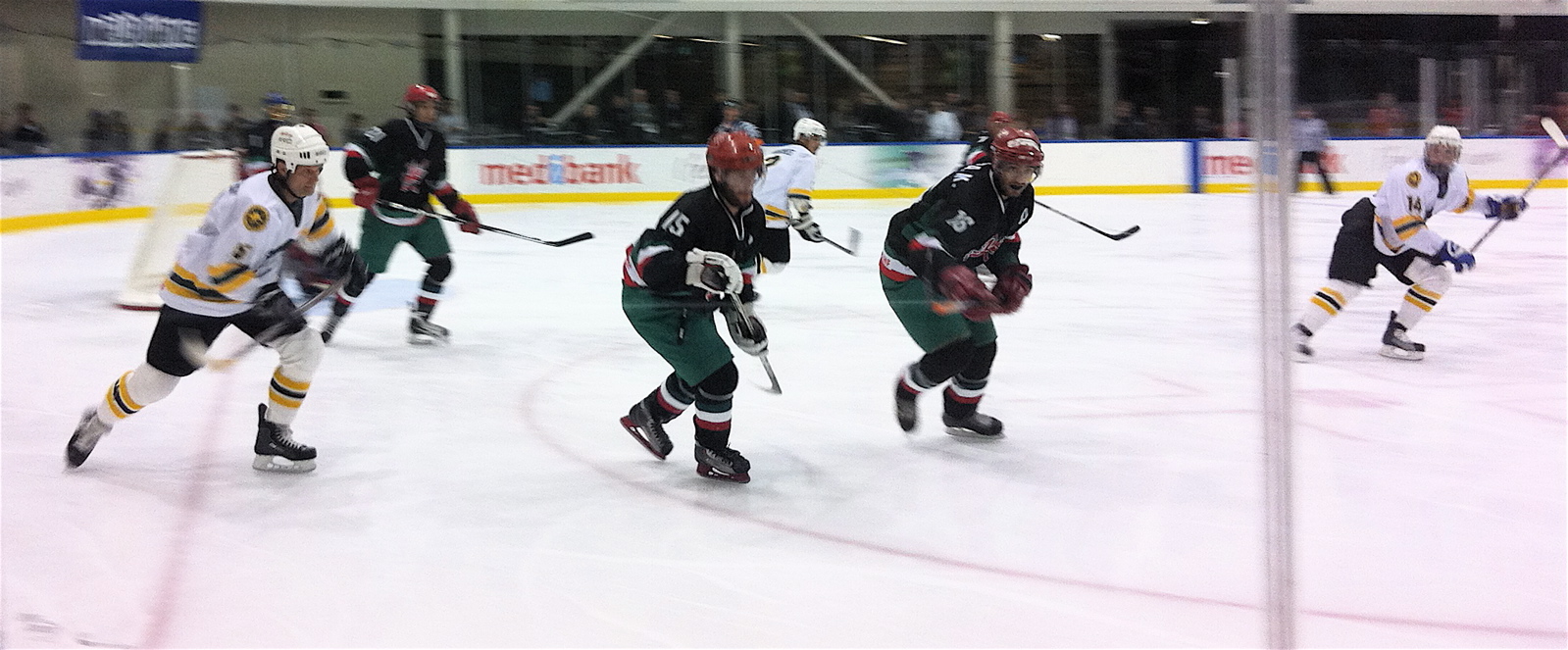 There are only a few people on the Heinke Rink and Georgi – Perth’s hottest music sensation (yes, soak up that free gratuitous publicity, George – who, did I mention? is playing around Melbourne over the next week: see you there, hockey fans) – proved to be a decent skater, drawing on lots of inline experience. Mack, for a kid who hardly ever joins us on the ice, looks solid, wielding a stick for the first time. He later said he wants to sign up for Saturday morning Intro to Hockey sessions! Three Places on the ice? Too good to be true … we could have our own line in a team!