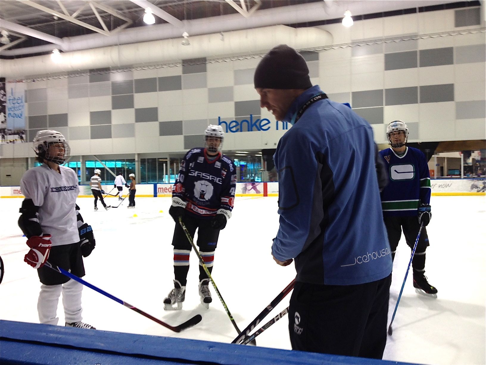 But then, thankfully, we were into puck-handling and I simply enjoyed myself, skating well enough to keep up while learning wrist-shots, honing my backhand passes and other such party tricks. Too much fun.